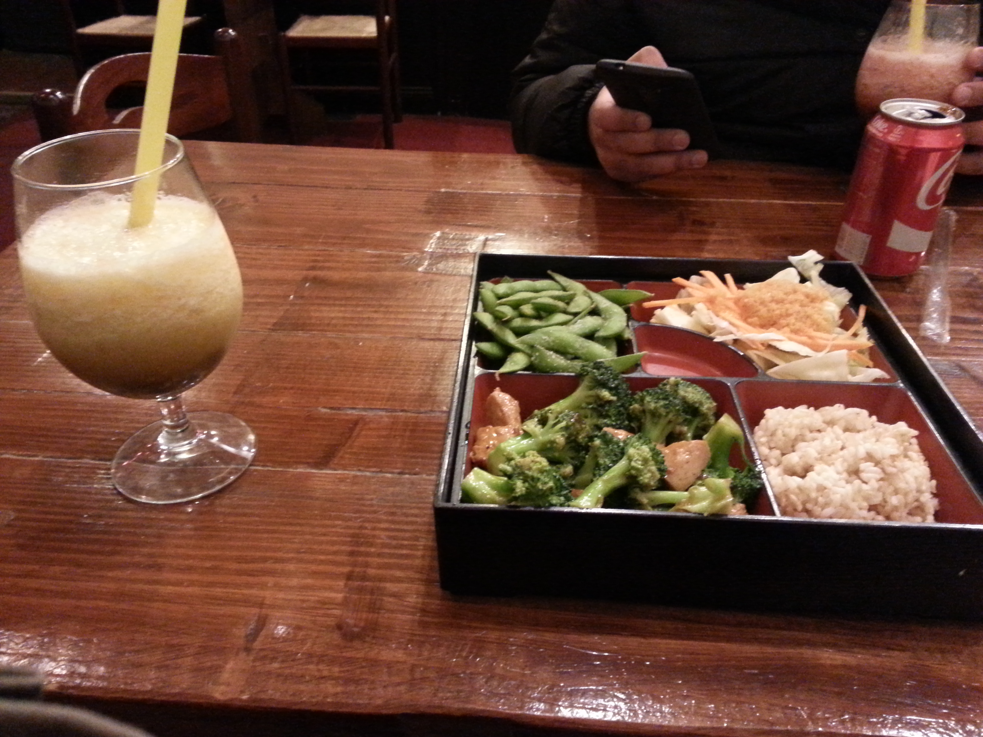Before going to Bay House, I had never been there before. So as a past vegetarian (not anymore, but I still like anything soy) I was excited to try their Mock Soy Chicken and Broccoli, in a bento box! Plus, I got Mango flavored Bubble tea.