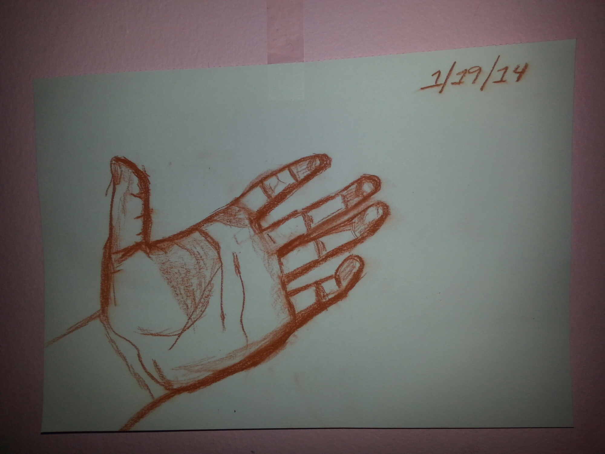 Drawings by yours truly **Original Artworks Created by Nicole Oliva and Image by Nicole Oliva** (Top left) Self-portrait 2013; (Top right) A Still Life 2013; (Bottom right) Two Hands 2013 (Blown up version of the image on the bottom left) All original works that are shown here were created for a drawing class.